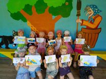 В детском саду проходила неделя, посвященная Дню русского языка, организовывались выставки рисунков, посвященные сказкам А.С.Пушкина. Так наши ребята, посещающие среднюю старшую группу, примерили на себя роль художника - иллюстратора. Во время летней прогулки, вспомнили произведение А. С. Пушкина, и проиллюстрировали сюжет «Сказки о рыбаке и рыбке».
